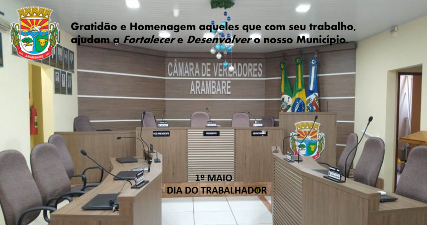A Câmara Municipal de Arambaré parabeniza todos os trabalhadores que de uma maneira ou outra, ajudam a melhorar nossa comunidade.