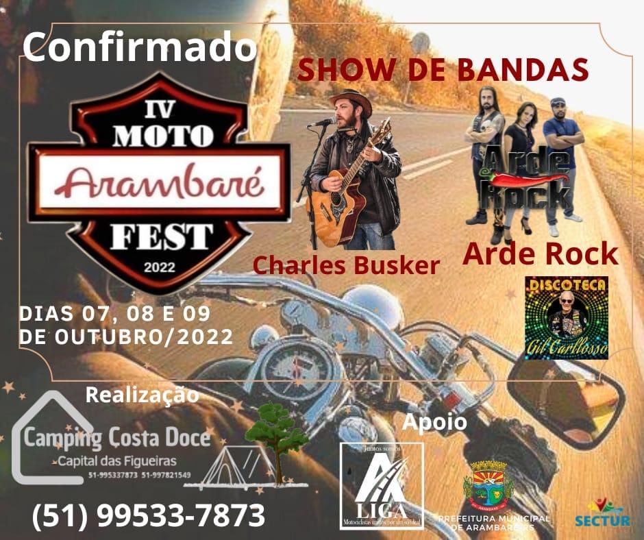 Acontecerá neste final de semana a IV Motofest Arambaré, serão nos dias 07,08 e 09 de outubro no Terminal Turístico de Arambaré.