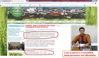 Vejam a noticia da foto publicada em dezembro de 2017, quando anunciou a reforma do ônibus que estaria atendendo a comunidade de Santa Rita, e o quadro de horário publicado.