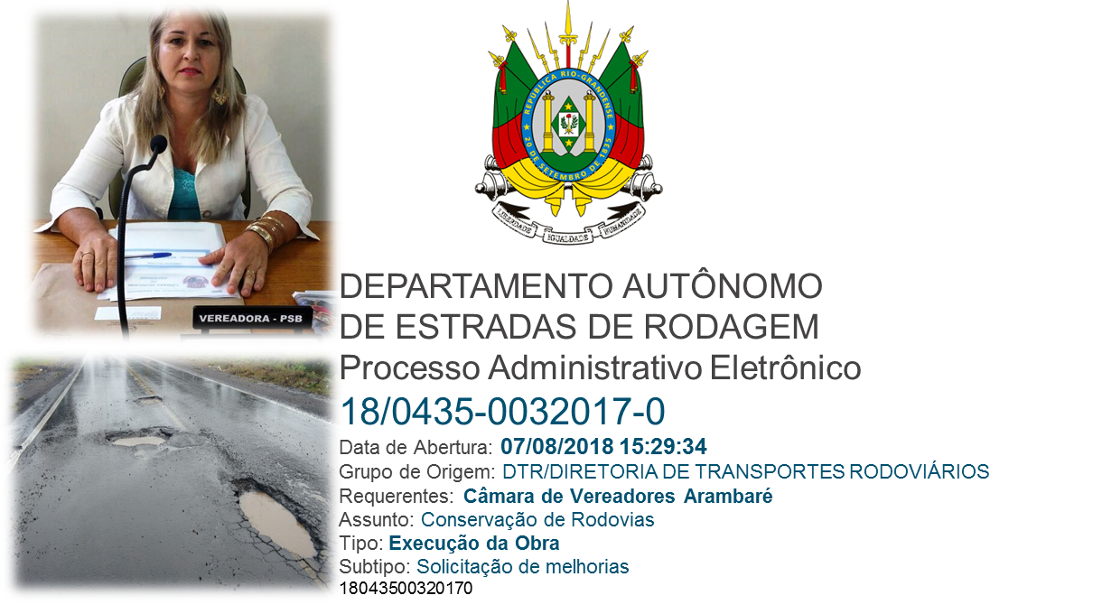 Na pauta da reunião os problemas com os buracos na RS 350, trecho Arambaré Camaquã . A Vereadora entregou ao diretor um oficio assinado por todos os Vereadores de Arambaré, solicitando providências urgentes na manutenção da rodovia, pois o risco de acidentes é muito grande. A Vereadora Márcia solicitou uma atenção especial a este problema, salientando que reparos paliativos já não fazem efeito, pois devido ao transito pesado na rodovia em épocas de safra a camada asfáltica está bem desgastada, e operação tapa buracos não resolve, é necessário um reparo de recapeamento em alguns trechos.